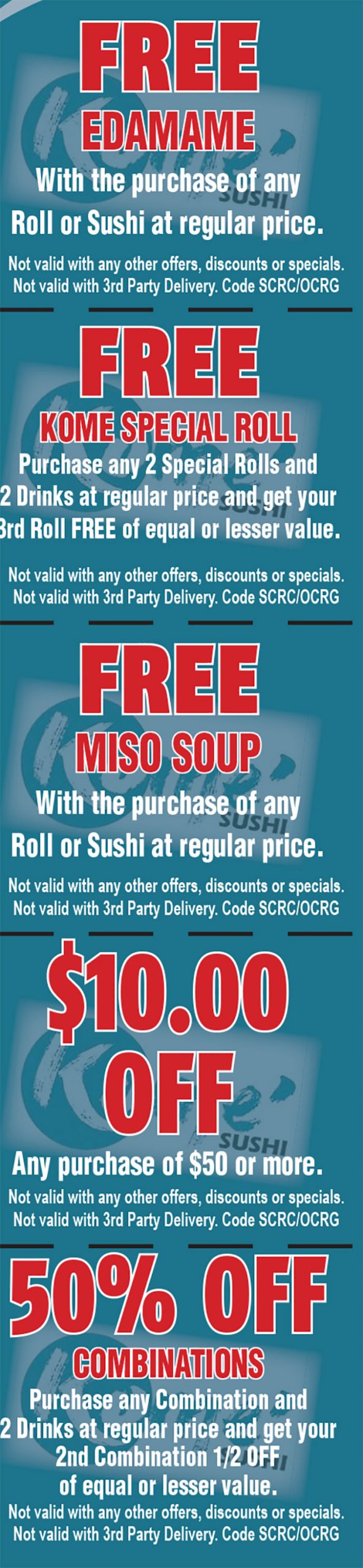 Kome Sushi 5750 E. La Palma Ave, Anaheim Call for Reservations/Ordering 714-777-9511 Go to our Website ORDER<br /> KOME SUSHI<br /> ONLINE Just show your coupon to your server and $AVE!