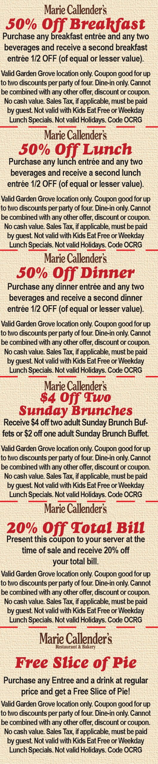 Marie Callender’s Garden Grove 13252 Brookhurst St, Garden Grove Call for Reservations/Ordering (714) 537-0801 Go to our Website Just show your coupon to your server and $AVE!
