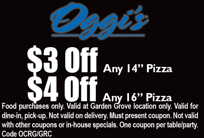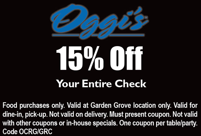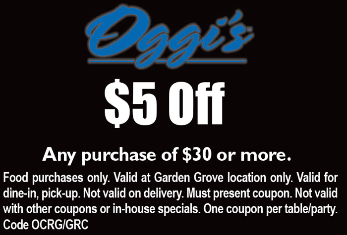 Oggi’s 12362 Chapman Ave. Call for Reservations/Ordering (714) 534-3599 Visit our Website Sign up for Special Offers Here! Just show your coupon to your server and $AVE!