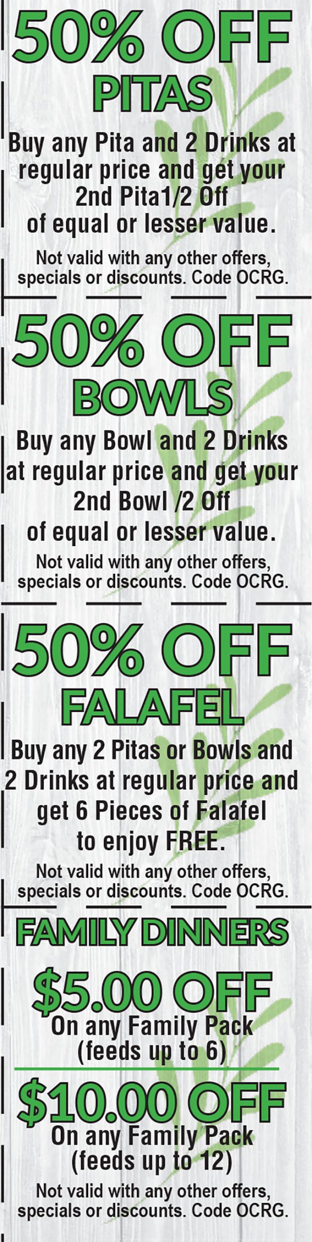 Sababa Falafel Shop 11011 Brookhurst St, Garden Grove Call for Reservations/Ordering (714) 603-7933 Go to our Website Just show your coupon to your server and $AVE!